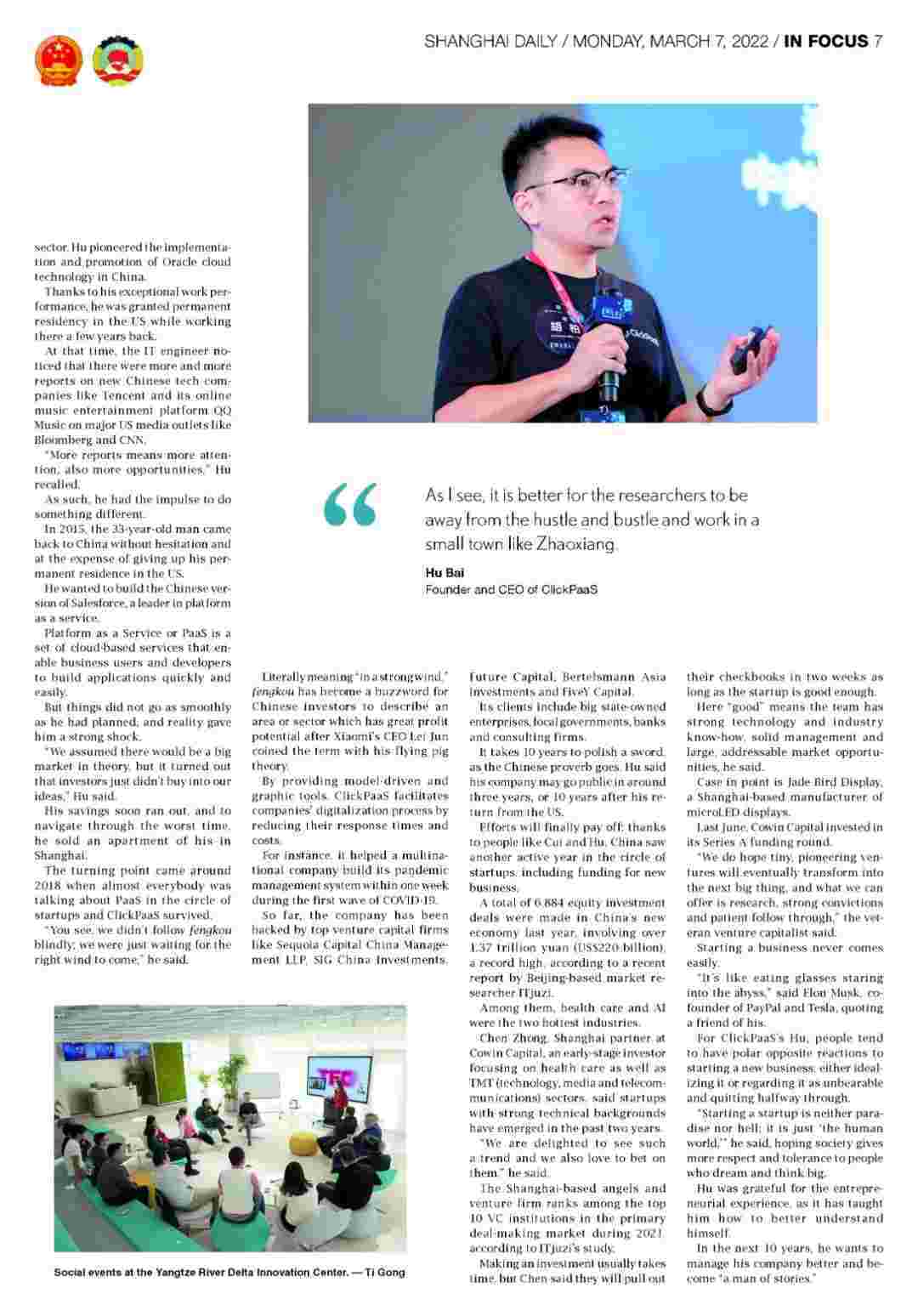 《上海日报》专访CGPAY钱包创始人、、、、CEO胡柏,,探究其创业背后的故事!!