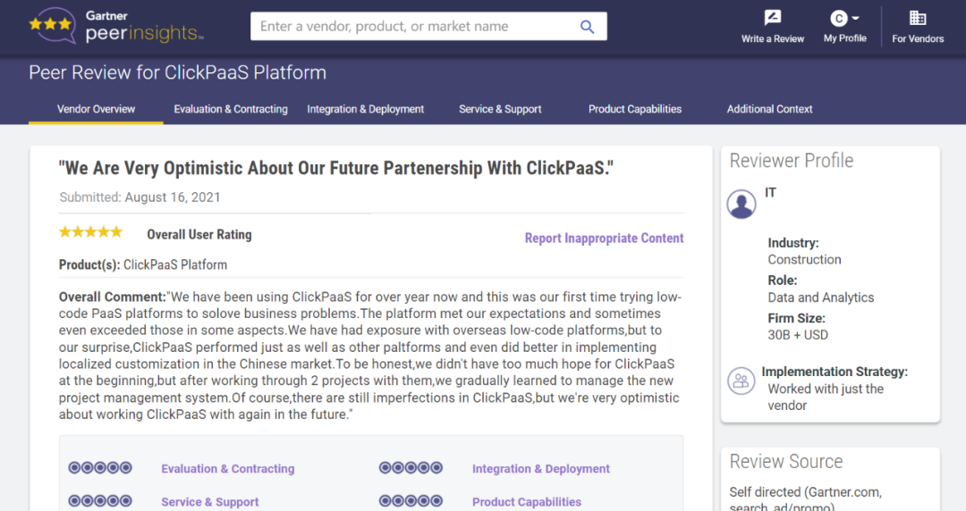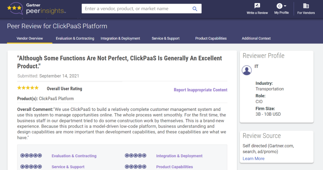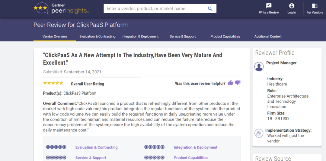 Tips::【Peer Insights】——用户对企业IT产品和服务发布真实评价的平台。。目前已有355个市场,,,255,000条经过验证的评价。。。。每一条评价Gartner会针对参评企业营收规模及参评人员信息做验证、、、评价内容做多维核实。。